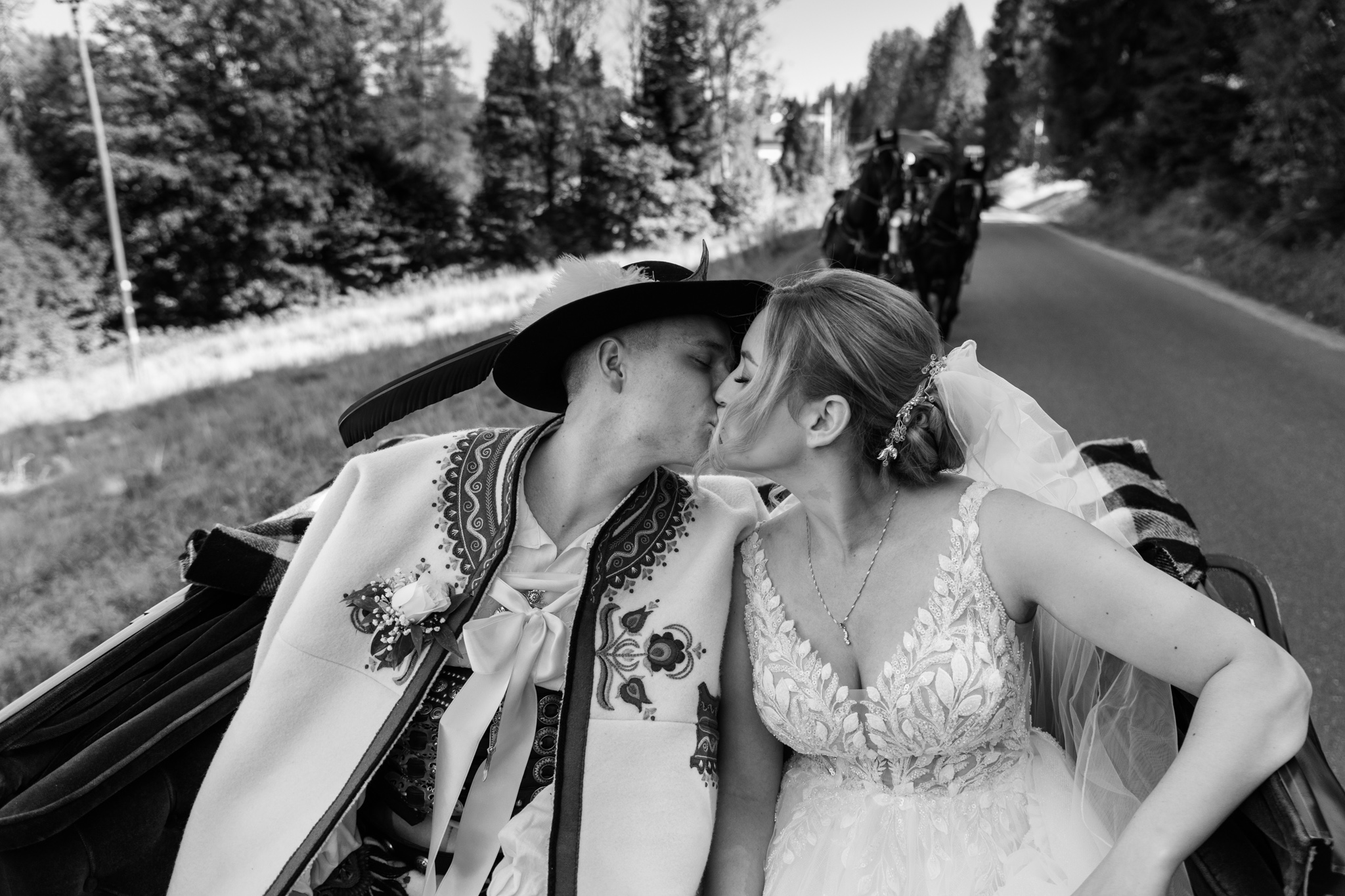 Zosia i Michał, którzy poznali się podczas studiów geodezyjnych, pobrali się we wrześniu w kościele w Brzegach. Ich ślub, pełen góralskich tradycji, odbył się w jesiennej scenerii Tatr, wśród muzyki skrzypiec i barwnych strojów gości.